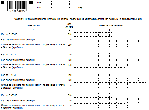 - раздела 1, отражающего итоговые суммы, начисленные за период авансов с разбивкой их сумм по ОКТМО;